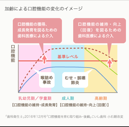 呼吸や嚥下、口腔機能の正常な発達を促し、歯並びや容姿を正し、自信のもてる笑顔を作り、本来持っている学習能力の正常な発達を促し、生涯食べる能力を維持し、介護にならず自立を促し、終生自分の人生に誇りを持てるようにすること